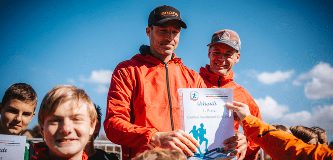Kurz zuvor hatten unsere „Running Penguins“ schon an anderer Stelle brilliert. Am 3. Oktober nahm ein dreiköpfiges Team beim Colditzer Stundenlauf teil. Hier ging es darum, als Team innerhalb von 60 Minuten so viele Stadionrunden wie möglich zurückzulegen. Am Ende hatten unsere rasenden Pinguine Paul, Alex und René 105 Stadionrunden geschafft, was 42 Kilometern, also einem kompletten Marathon entspricht. Das bedeutete zugleich auch den Sieg für unser Team.